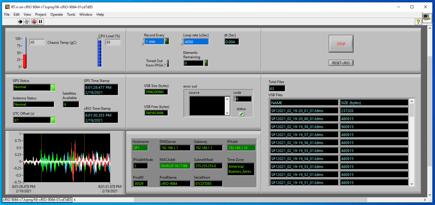 Conclusión: actualmente el sistema funciona en varias zonas sísmicas de Argentina con total autonomía. En la última etapa, los cRIO fueron conectados a internet y es posible acceder a los mismos y a los datos almacenados en forma remota 24/7.